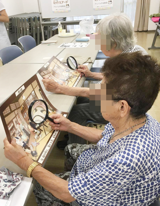 ミッケルアートは、 思い出話をきっかけにした認知症予防として多くの介護施設様で活用されています。